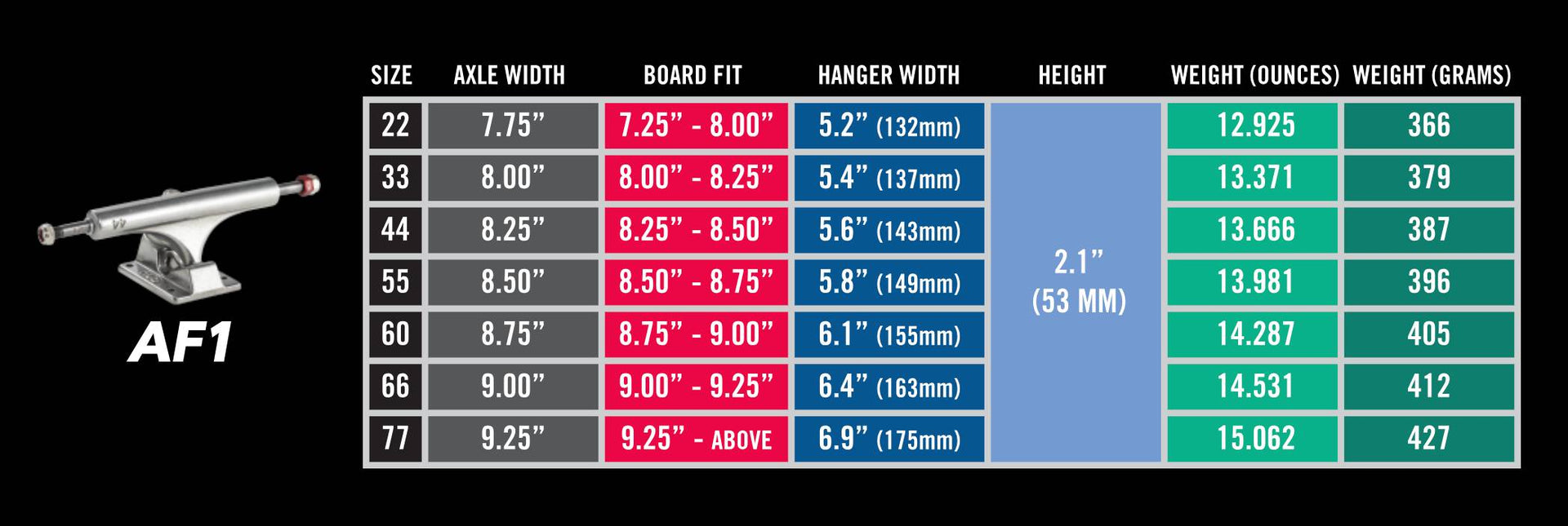 At the heart of the design is a patent pending technology providing a more stable anchor point for the kingpin. And the innovative hollowed axle system and domed-out baseplate make it the strongest and lightest truck Ace has ever created.