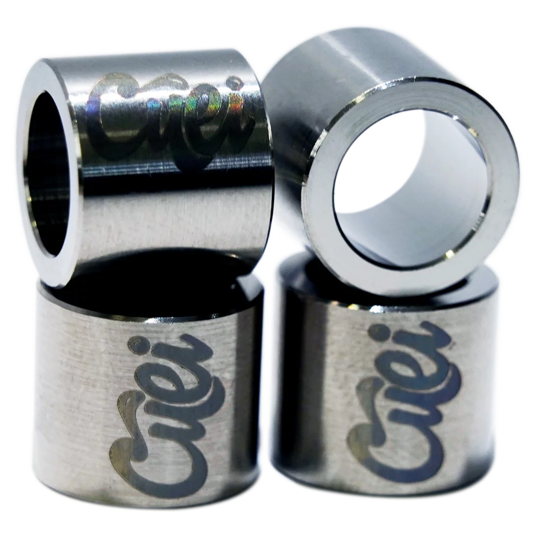 The updated version of the Cuei Precision Spacers are now made with Stainless Steel, which is extremely strong and makes it nearly impossible to change its measurements over time. Stainless steel discards the need for anodized paint because it is already an oxidation-resistant metal, in other words, this piece will last a lifetime. Cuei have engraved their logo with a laser machine to make sure this beautiful piece of engineering is not confused with other ordinary spacers.