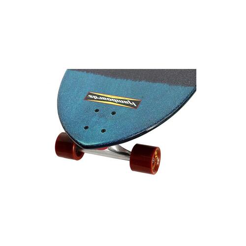 The premium birch maple deck is planfully cut out in a bulging fish shape. This allows the board extreme maneuverability and sharp turns while holding speed and line without sliding out too much.