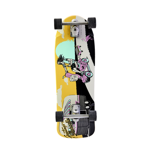 The Burst is built with the HST 2.0 truck system. It has a 40° pivot axis in the front, a 20° pivot axis in the rear, and both trucks have 180mm hangers. It is 32" long and 10" wide with a  19" wheelbase. This setup makes the Burst pump like no other board we have ever made.