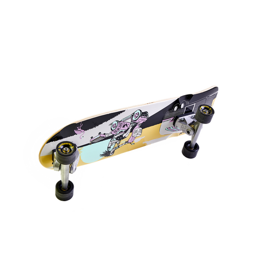 The deck is like no other we have ever sold. It has a concave and kicktail with a custom black griptape on top. The bottom of the decks feature original artwork created for us by the renown Florida artist, Ayden Stoefen.