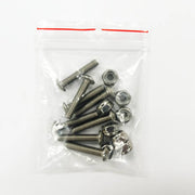 Comes with 8 pieces 1.25 inch bolts and nylon lock nuts. Allen key is not included.