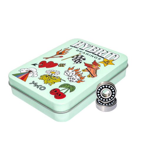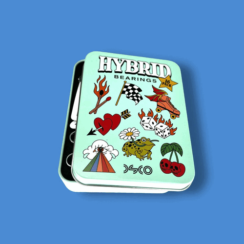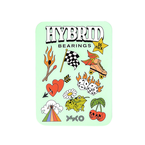 Elevate your skate journey with DSCO Bearings Hybrid 16 Pack – a bundle of 16 bearings that seamlessly blend tradition with innovation. Featuring quality chromium steel ball bearings, one self-cleaning ceramic ball bearing, and high-caliber steel deep groove races, these bearings redefine performance. Impact-resistant nylon ball cages dance through terrains with resilience, and the inclusion of axle nuts, washers, and lock-tight bearing spacers adds versatility. Frictionless removable rubber shields bring an extra layer of style, and each pack includes a sticker pack for a personalized touch. Cleaning instructions and stickers complete the ensemble, showcasing DSCO Bearings' dedication to strictly good vibes and top-notch products.
