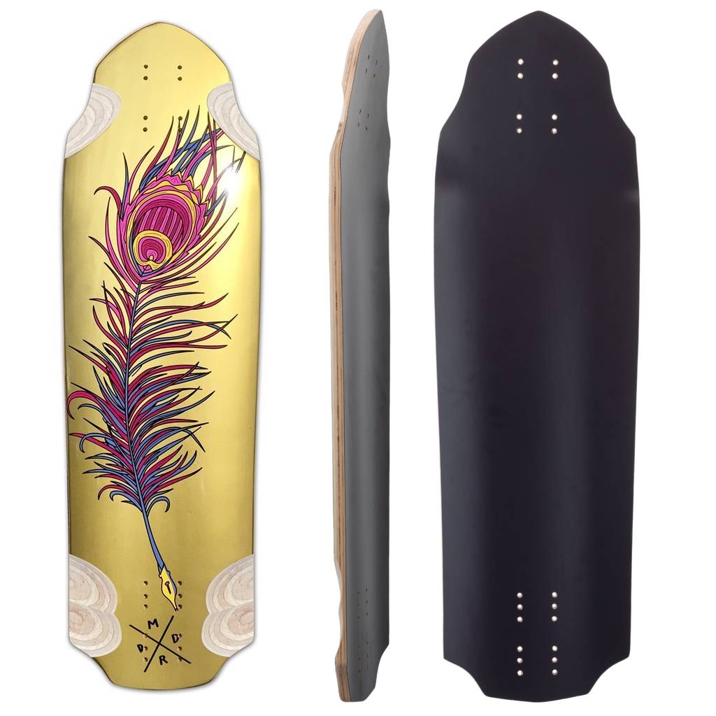 This longboard deck was designed for downhill and fast freeride. The W-Concave extends from the front foot pocket all the way down to the tail of the deck. The nose is designed with a wedge that acts as a pocket to lock your front foot and control your board.