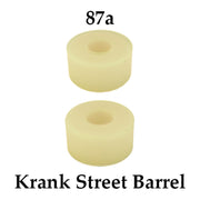 - Softer KranK durometer bushings (87a) are best for lightweight riders as well as for those looking for a looser setup in the RoadSide position when coupled with a harder duro bushing.