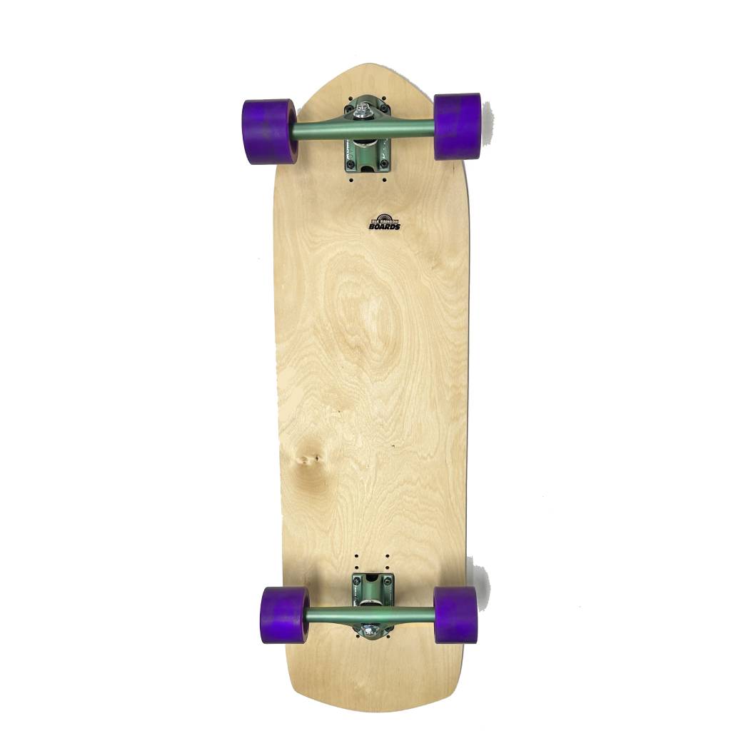 Pressed with Canadian hard rock maple with an epoxy infused middle core. The result is a crazy light deck but stiff. Has the right amount of flex for carving and pumping.