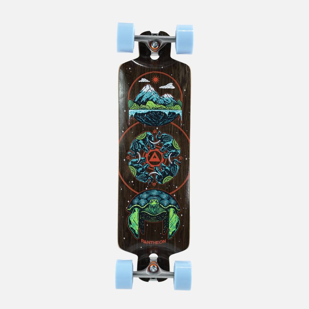 This perfect commuter longboard comes completely assembled. It’s ready to ride out of the box with Pantheon Stylus Trucks, and your choice of 92mm Karma or 102mm Hoku wheels, and Pantheon high precision bearings. Please note the Patanjali photo shows Paris trucks and McFlys but the Patanjali graphic Pranyama ships with black Pantheon Stylus trucks and Karama wheels.