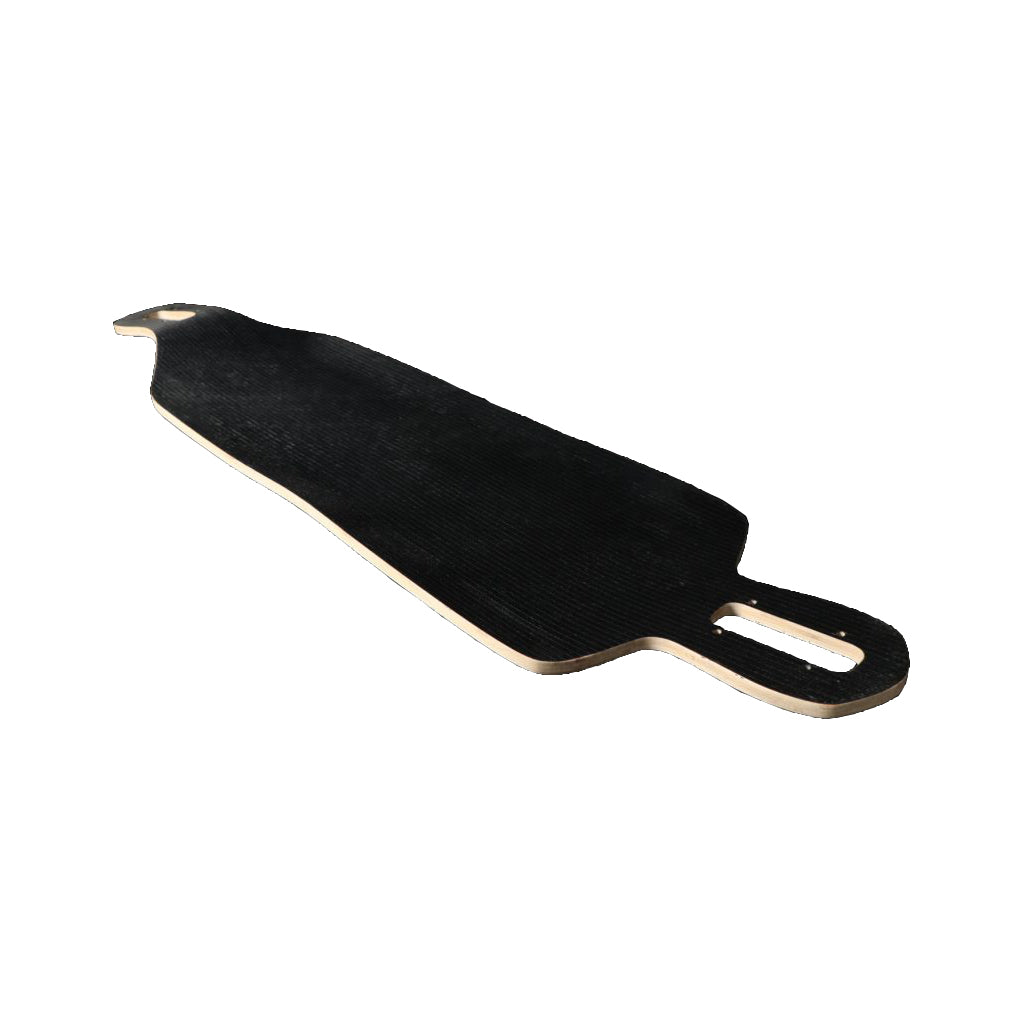The Rambler offers an easy and affordable entry into LDP (long distance pumping/pushing). It is designed to run standard 50° trucks between 150mm and 180mm and wheels up to 90mm. It has a low standing platform which makes it easy to push and thanks to a wedged front and a dewedged back it pumps amazingly. Its ergonomic 3D concave locks your feet when needed but stays comfortable for hours. There is even a little tail to help you pop up the board at the end of your ride.