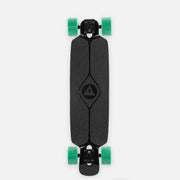 The Urban Ember features a fork nose and a kicktail and sports the Wanderlust graphic. The fork nose helps keep your deck from getting hit should you lose the deck and have it run into a curb, and the kicktail helps riders navigate urban environments and kick the board up easily once you arrive at your destination.