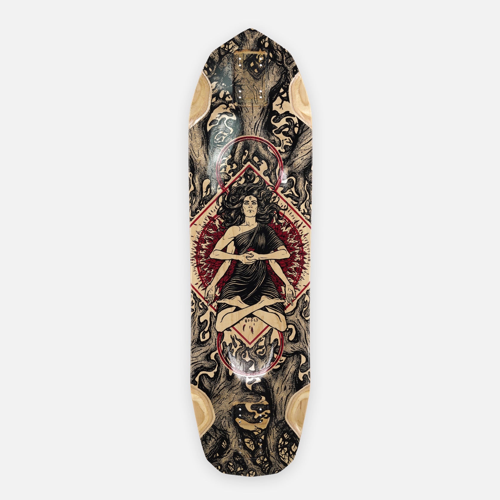 The concave on the Sacrifice pays homage to the Sacrifice of old while modernizing to Pantheon’s 2024 standards. The deck was so good when Pantheon first made it back in 2017 that many Pantheon team are still skating it! The goal has been to create a sleeker, better looking board that reflects some of the concave desires of modern riders, but still keeping the Sacrifice soul that everyone loves.