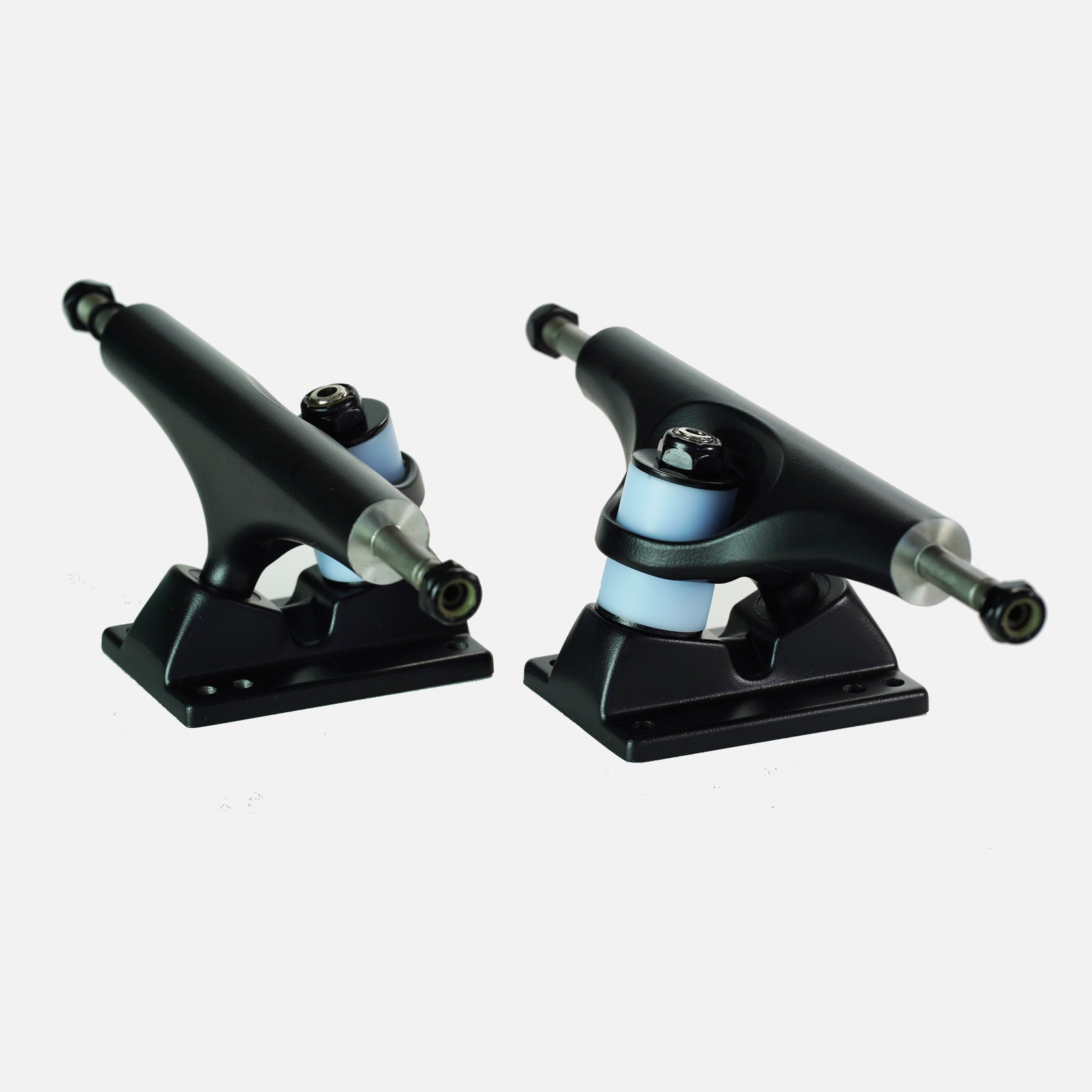 Other awesome features include faced hangers, so your bearings sit flush and true. A 55.75mm ride height is fairly low compared to any other TKP style truck that turns this well. These 397 gram trucks are quite light weight due to their design combined with hollow kingpins and axles.