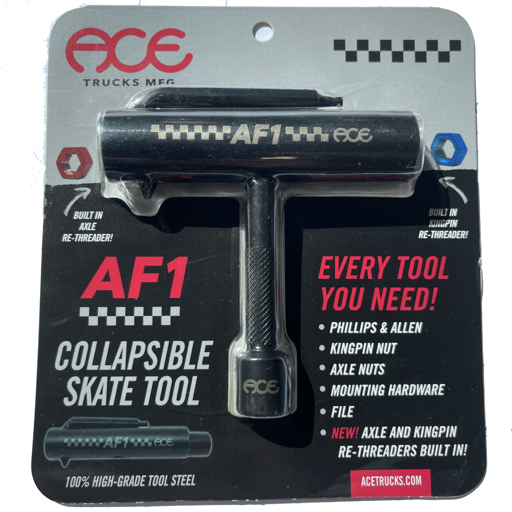 Now you see it, now you don't. Meet the last skate tool you will ever need. Proven T-shape when assembled. Super compact shape to go with you when collapsed. Don't leave home without one.