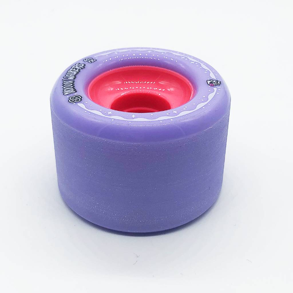 Featuring a 65mm diameter, an ultra-durable core and high rebound, 78a stone ground urethane, the Mooonwalkers are a premium wheel for longboard dance and also serve as a comfortable, great sliding cruiser and freeride wheel.