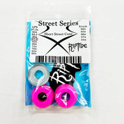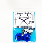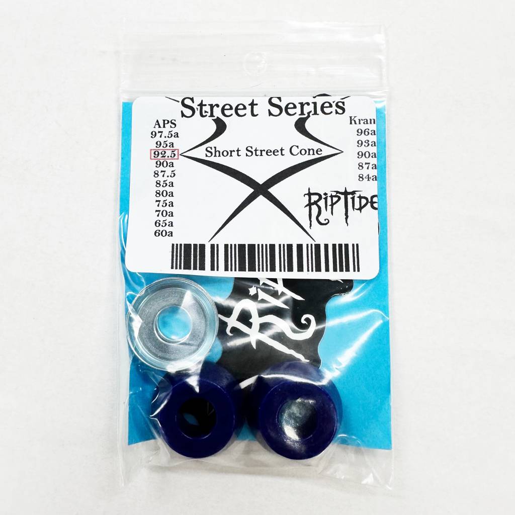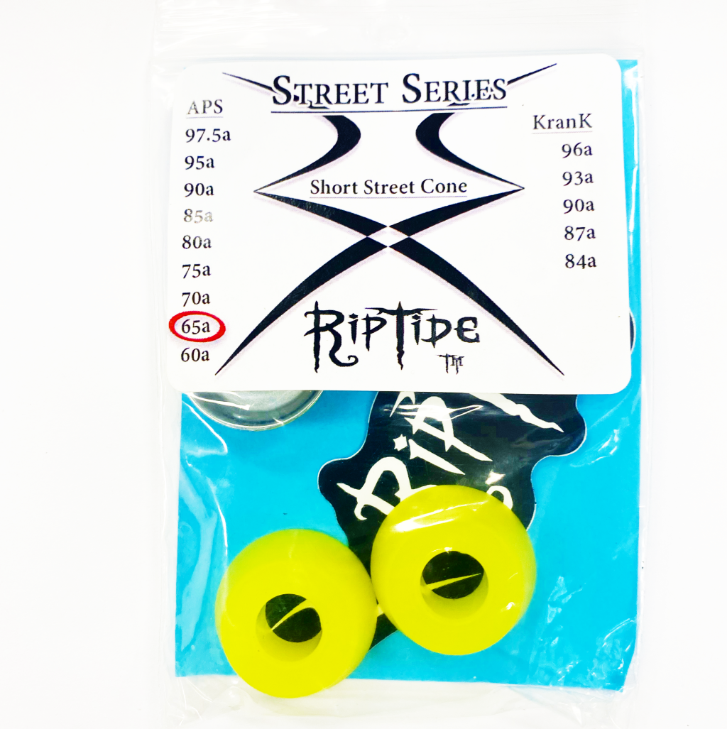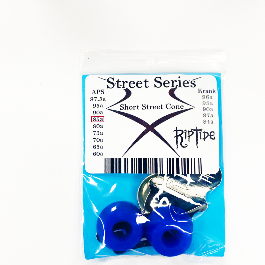 The RipTide Street-Series of bushings, for traditional kingpin trucks, was born from the desire to bring new levels of performance and innovation to skateboarding. RipTide believes that to achieve your goals in skating, you need to have a high level of control over your equipment. If your setup performs the way you want it to, you have a much better chance of doing what you want to do - whether that means landing a seemingly impossible trick, controlling a massive drop at high speeds, dealing with rough roads, eliminating wheelbite, executing fluid moves during a vert session or pumping mad lines in the bowl. Up until now, the rule has been to only use cones and barrels and......